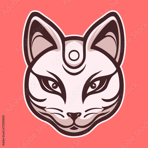 © Twenty One Studio, Obraz premium cute Japanese kitsune mask vector in pink background