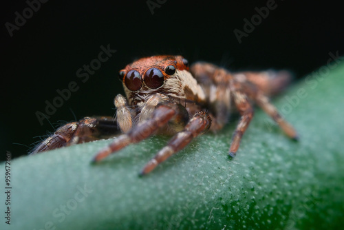 © abdul, Fototapeta premium Cute jumping spider on the branch plant