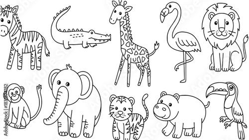 Obraz premium Cute jungle animal coloring page for kids printable outline art