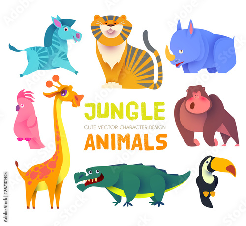 Naklejka premium Cute Jungle Animals Set. Exptic Wild Collection.
