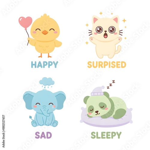 © Fina, Naklejka premium Cute Kawaii Animal Icon Set