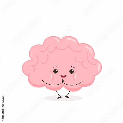 Obraz premium Cute kawaii brain. Funny character human brain. Cartoon flat style. Vector illustration