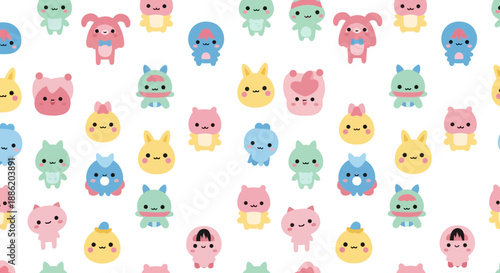 © Tiu, Obraz premium Cute Kawaii Characters Seamless Pattern