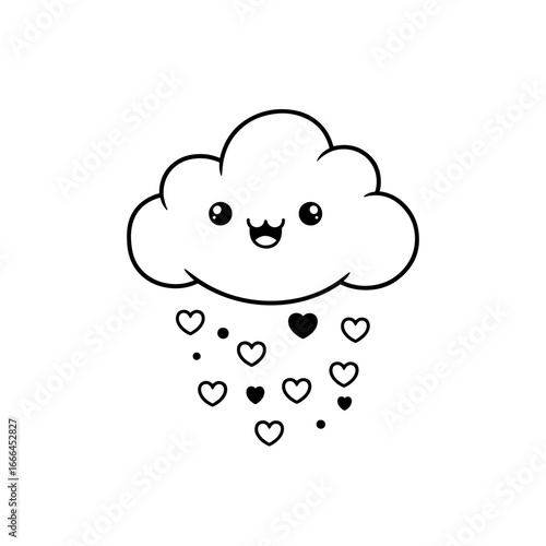 Obraz premium Cute Kawaii Cloud Raining Hearts, Love, and Happiness Doodle Vector...
