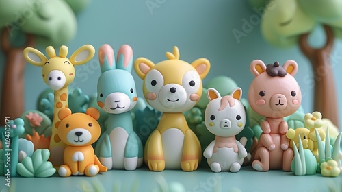 Naklejka premium Cute Kawaii 3D Animal Character Design on Simple Backdrop