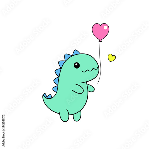 Naklejka premium Cute Kawaii Dinosaur with Smiling Face and Balloon