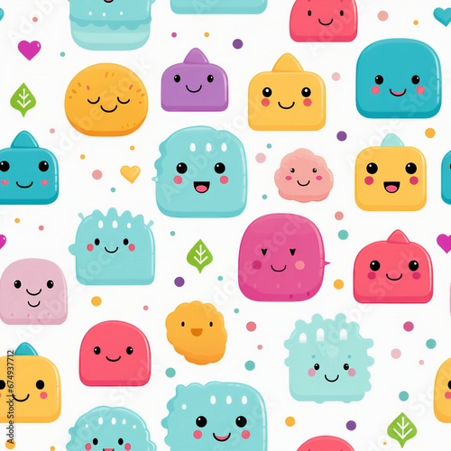 © Michael, Fototapeta premium Cute Kawaii Faces and Icons Pattern