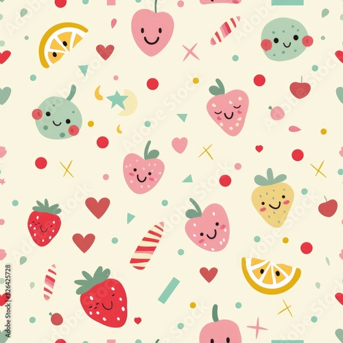 Fototapeta premium Cute Kawaii Food and Animal Pattern for Background Design