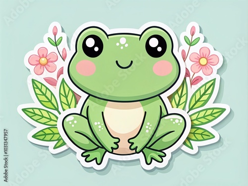 © Four888, Obraz premium Cute Kawaii Frog Sticker Bookmark Collection - Hand Drawn Vector Designs for Fun and Whimsy