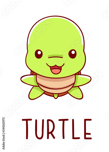 Obraz premium Cute kawaii hand drawn turtle doodles, lettering little turtle, isolated on...