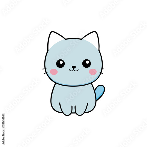 © Cartoon vect, Obraz premium Cute Kawaii Kitten with Blushing Cheeks