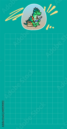 Naklejka premium Cute kawaii notes. To do list. Sticker Little dragon. Beautiful planner for school. Flat vector set.