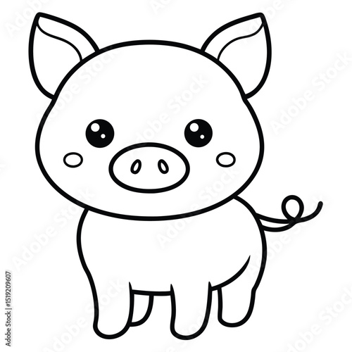 Fototapeta premium Cute Kawaii Pig Illustration Minimalist Style