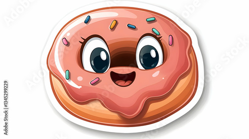 © Bos, Fototapeta premium Cute Kawaii Pink Donut Sticker with Sprinkles