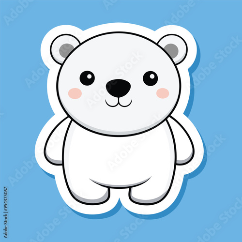 © Ranadhie, Naklejka premium cute kawaii polar bear sticker vector illustration, cute funny polar bear sticker