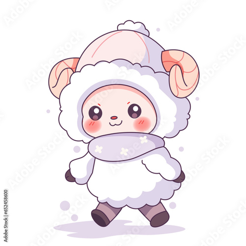© Nadzezhda, Fototapeta premium Cute kawaii sheep in winter clothes. Vector illustration.