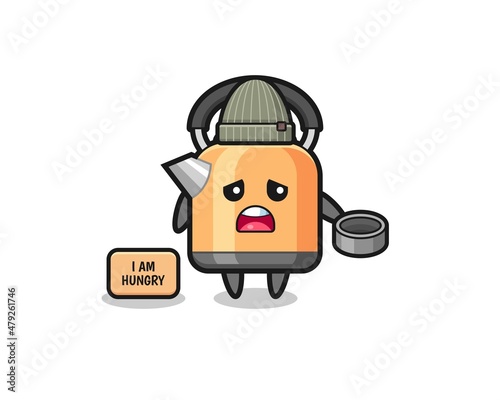 © heriyusuf, Fototapeta premium cute kettle beggar cartoon character
