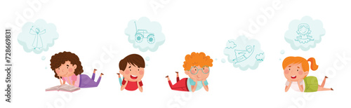 Obraz premium Cute Kid Imagining Object in Dream Bubble or Cloud Vector Set