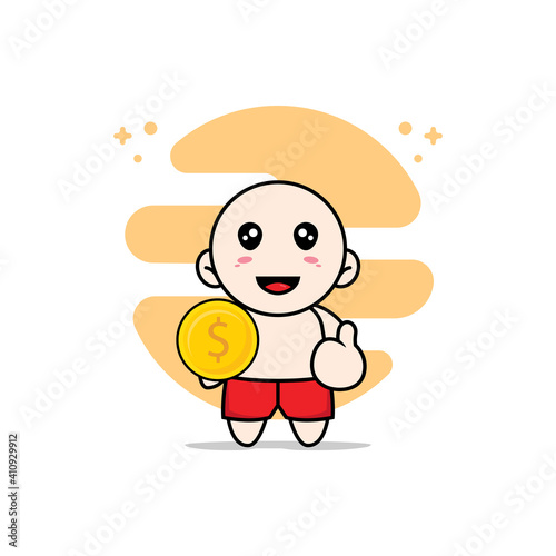 Fototapeta premium Cute kids character holding a coin.