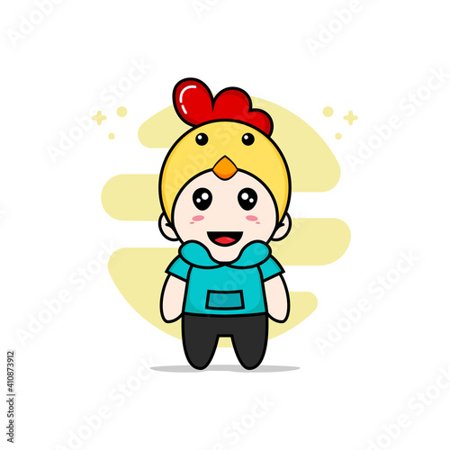 © Turn, Naklejka premium Cute kids character wearing chicken costume.