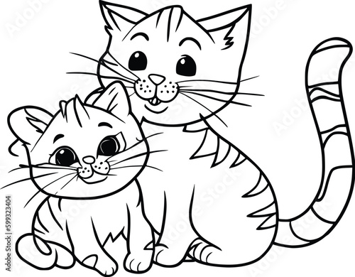 Obraz premium Cute Kitten and Mother Cat Coloring Pages for Kids