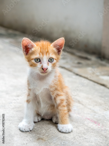 © jeafish, Fototapeta premium Cute kitten at home backyard