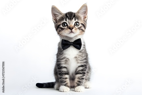 © say, Obraz premium Cute Kitten in Bow Tie on White Background for Adorable Portrait