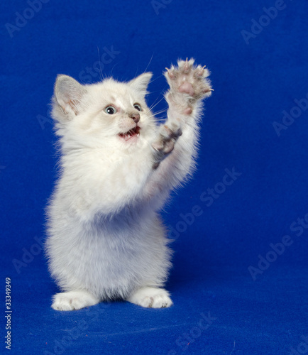 Fototapeta premium Cute kitten on blue background