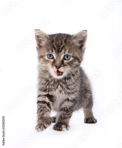 © Lukas Gojda, Obraz premium Cute kitten over white