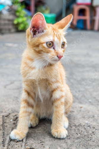 © jeafish, Naklejka premium Cute kitten sit on corridor