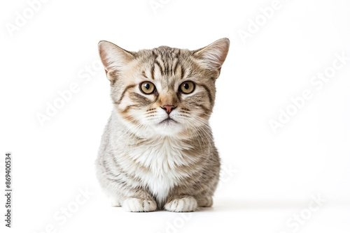 © Rysak, Obraz premium Cute Kitten Sitting and Looking at Camera on White Background