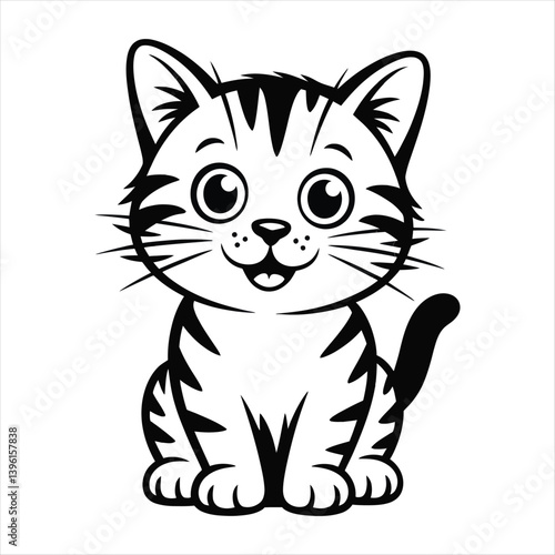 © HA, Obraz premium Cute Kitten Sitting Face Cartoon Happy Whiskers Stripes Vector