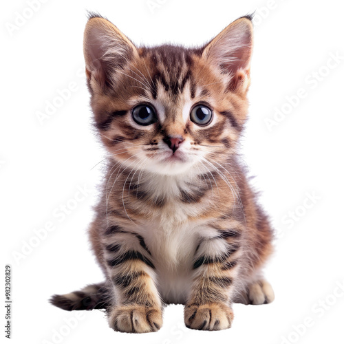 Fototapeta premium Cute Kitten Sitting with Big Blue Eyes Isolated on White Background, kitten , cute , cat , animal
