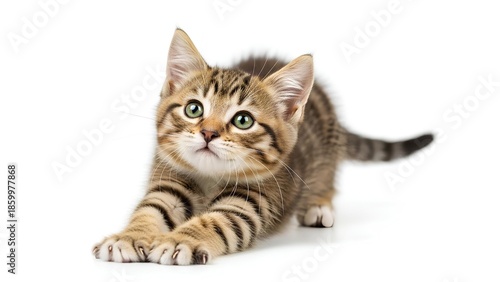 © babylon, Obraz premium Cute Kitten Stretching Neck While Playing Isolated Studio White