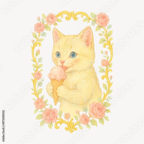 © Rawpixel.com, Obraz premium Cute kitten with ice cream