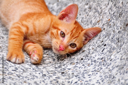 Fototapeta premium Cute kittens are playing and exploring the area happily.