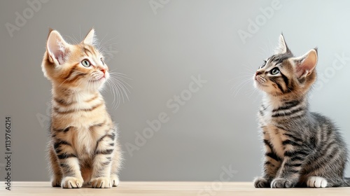 © Smoky, Naklejka premium Cute Kittens Playing Together on a Soft Neutral Background with Adorable Expressions