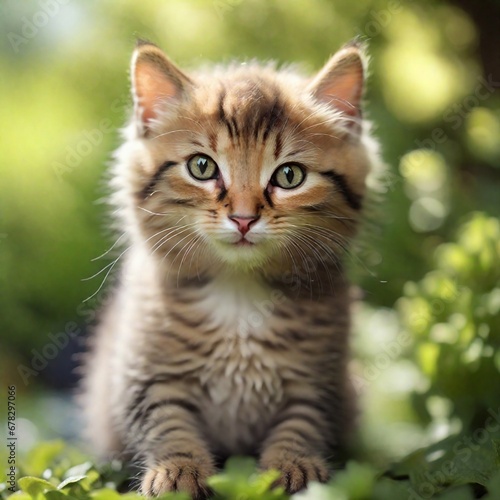 Fototapeta premium Cute kitty in garden bokeh background