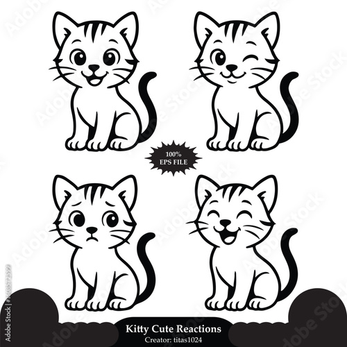 © titas1024, Fototapeta premium cute kitty mascot character different cute expression