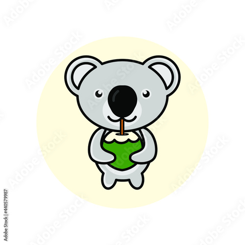 Fototapeta premium Cute Koala Drinking Coconut in Summer Vector Cartoon