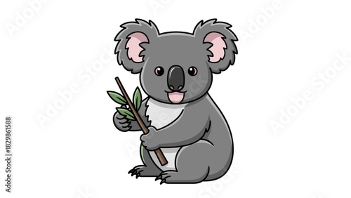 Fototapeta premium Cute koala illustration holding a branch, showcasing wildlife and nature