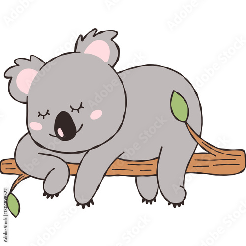 Naklejka premium Cute Koala Sleeping on Tree Branch Doodles