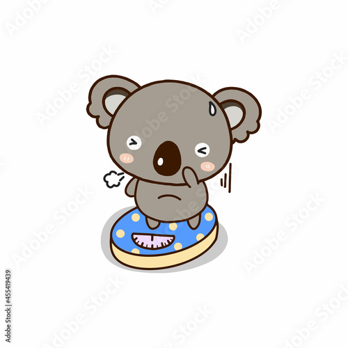 © miss[SIRI], Naklejka premium Cute koala weighed on the scales. Cute cartoon character.