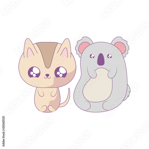Fototapeta premium cute koala with cat baby animals kawaii style