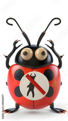 Obraz premium Cute Ladybug Icon with No-Entry Sign on Isolated White Background