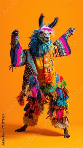 Fototapeta premium Cute lama wearing colorful clothes. Vertical background