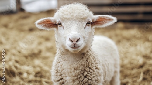 Fototapeta premium Cute lamb in a hay field