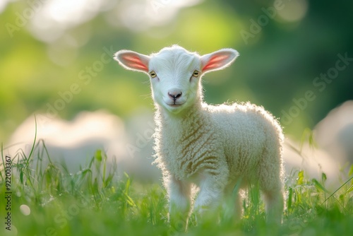 © Snowstudio, Obraz premium Cute lamb in the meadow