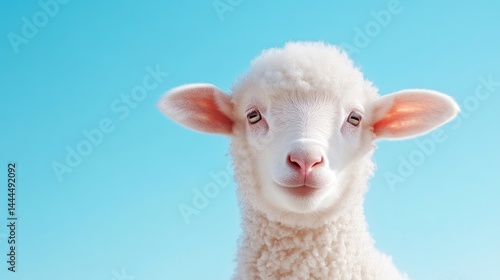 Fototapeta premium Cute lamb portrait against a vibrant blue sky