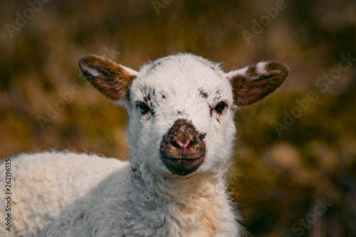 © Dan Morris, Naklejka premium Cute lamb with white and brown face
